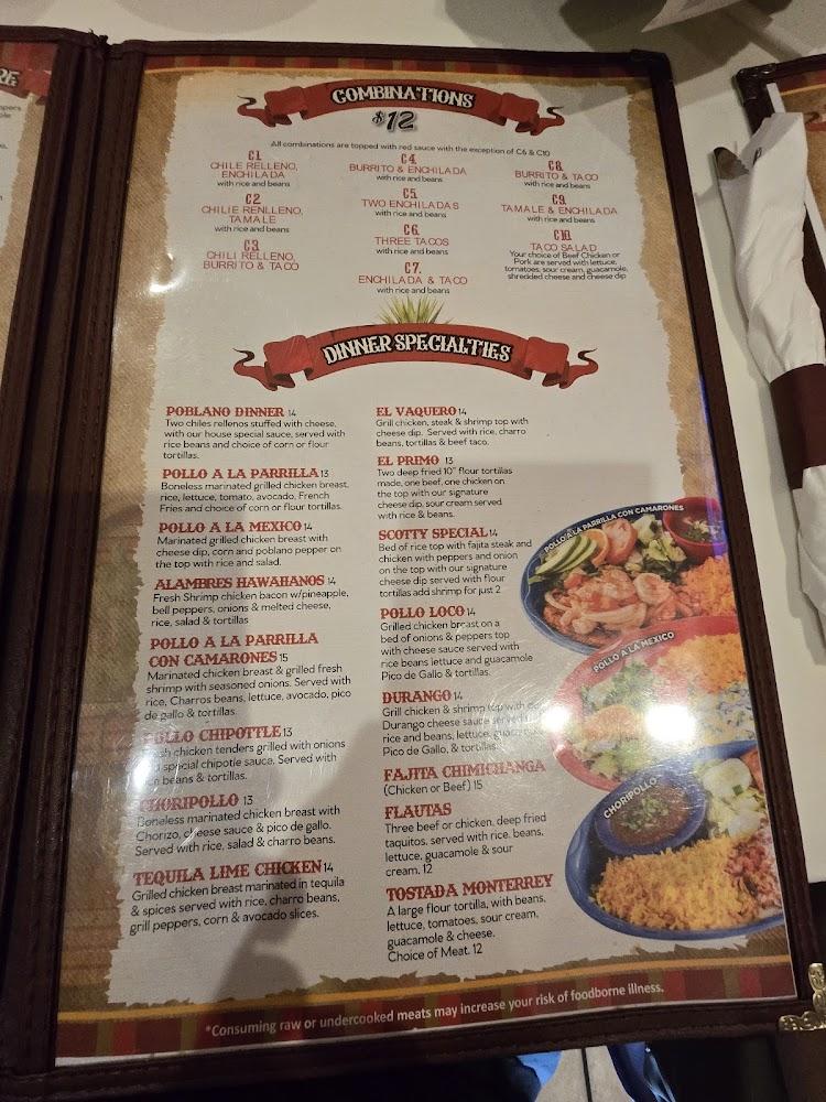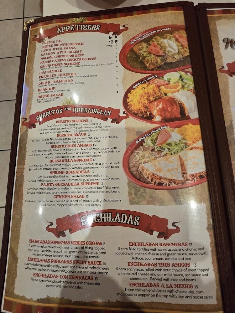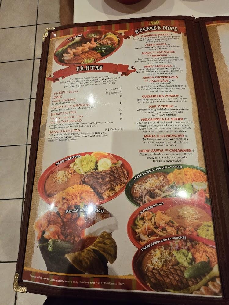 Fiesta Mexicana boasts an extensive menu with over 110 dishes. Classic items like enchiladas and tacos steal the spotlight. Their specialties include an array of fajitas, available with chicken, steak, or shrimp. Prices hover around $12.86 on average.